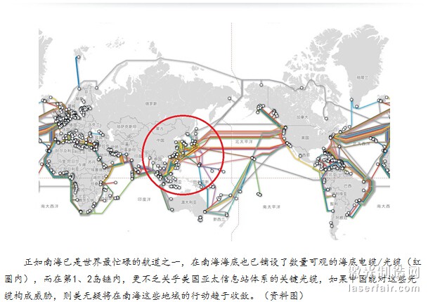 就在美國“拉森”號硬闖中國南海島礁12海裏附近海域時候,另一條發生在同一天的新聞卻鮮有關注:美媒稱11月26日俄羅斯潛艇與間諜船近期不斷出現在埋設重要國際海底通信主電纜附近區域,這一舉動引起了美國部分軍事官員與情報人員的擔憂。盡管此事顯示美仍以冷戰思維看待俄羅斯,但也凸顯出並不起眼的海底電纜對於美國的重要意義。麵對美國在南海對中國主權的侵擾,中國或可借鑒俄羅斯的做法,也挑動一下美國的“手筋”。