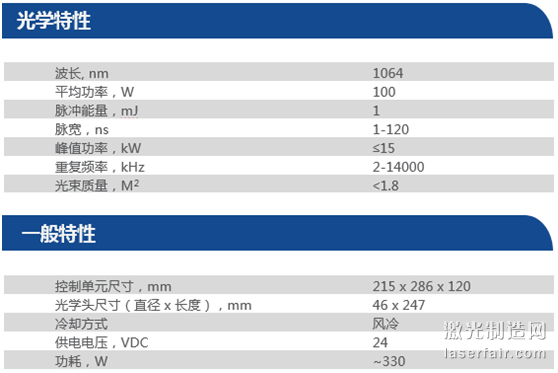 IPG推出的YLPN-1-1x120-100-M納秒摻鐿光纖激光器可提供15 kW峰值功率,平均功率最大100 W,脈衝(chong) 波形可調,脈寬範圍為(wei) 1-120 ns。YLPN-1-1x120-100-M由外部觸發,具有...