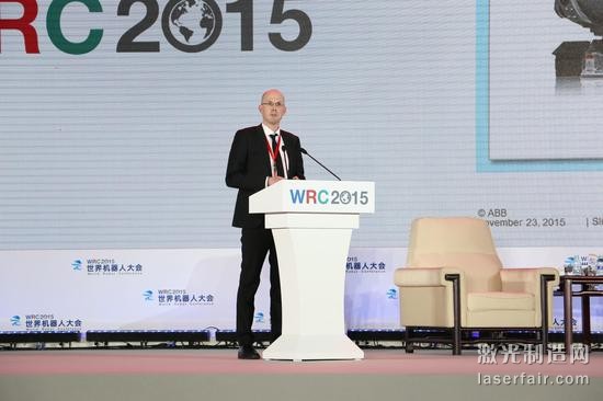 ABB機器人事業部產品架構總監DanielW?ppling,報告主題為:工業機器人:過去、現在與將來,挑戰與機遇。