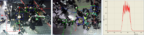 整個壓縮器放置在直徑2.24m,長度4.8m的真空室內,啁啾脈衝壓縮之後輸出到靶麵上的淨脈衝能量大於23J,實現了1PW的到靶脈衝能量輸出。下一步課題組將對全係統的光束質量、穩定性、靶室聚焦單元等做進一步的提高和完善,預計近期可實現整個激光係統數PW功率的穩定運行輸出。未來神光II激光裝置將會逐步發展成為國內高功率激光方麵的開放物理實驗平台,數PW激光係統建成後,使神光II裝置具有了提供1022-23W/cm2可聚焦峰值功率的輸出能力,不但提升了強場物理實驗方麵的能力,同時配合神光II原來的多種脈寬(1-10ps、35ps、100ps、1ns、3ns和5ns)輸出,也大大提高了神光II激光裝置在物理實驗方麵的靈活性和多樣性。