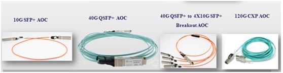 光互連從結構上看有四種實現形式,1)芯片內的互連;2)芯片之間的互連;3)電路板之間的互連;4)通信設備之間的互連。基於光引擎技術的有源光纜產品是實現數據中心高速光互連的最佳解決方案,是一種芯片間的互連結構。目前市場主流高速光互連AOC產品包括10Gbps SFP+ AOC、40Gbps QSFP+AOC、56G QSFP+AOC 和120Gbps CXP AOC等。