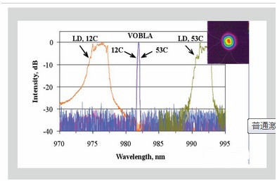國內外對半導體激光器的光譜特性及其穩定性技術有多年的研究,但是半導體激光器輸出功率較低,對其波長進行鎖定的技術不能應用到高功率激光器陣列中。但近年來,反射式體布拉格光柵(RBG)被應用於高功率半導體激光器的波長穩定和光譜壓縮,取得了明顯的效果。可參考L.Glebov和V.Smirnov的《Continuous Wave,30W laser-diode bar with 10GHZ linewidth for Rb laser pumping》和 張雪、李強老師的體布拉格光柵外腔實現激光二極管同相模輸出。請參考圖1、2