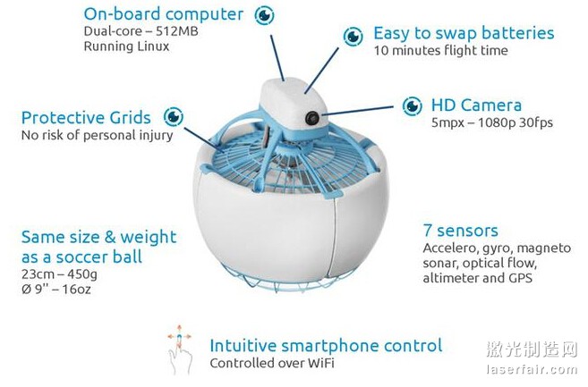 來自比利時的一群上進青年,可能是玩膩了傳統的無人機,也受夠了那些扇葉裸露在外,不僅極不安全、噪聲巨大,並且功能又很單一的小玩具。他們認為,「未來自拍杆」也得有個未來。於是,他們發明了一款全新的個人飛行機器人——Fleye。為了防止在飛行中碰傷花花草草,它被設計成球形,所有的風扇和核心部件都被包裹在中心。除了耐摔以外,你更可以在它飛行過程中撫摸它或者玩弄它,再也不用擔心周圍人厭惡的目光了(喂,幺幺零嗎?!)。