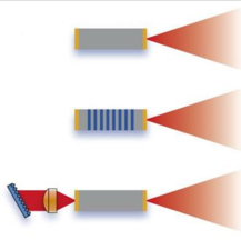 QC激光器的基本結構包括FP-QCL(上圖)、DFB-QCL(中圖)和ECqcL(下圖)。