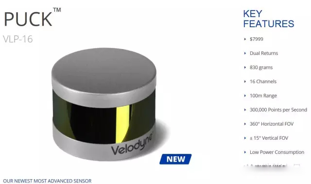 雖然福特蒙迪歐無人駕駛概念車上所使用的Velodyne 32波束產品相較64波束產品在體積和成本上都有所改善,但其實際售價仍然接近1萬美元。因此進一步的固態化,小型化,低成本化成為一個必然的方向。如下圖Velodyne在其最新的16波束產品VLP-16 PUCK上提出了“混合固態”的概念。大家可能會奇怪,什麽叫混合固態呀?下圖一為VLP-16 PUCK的官方數據信息。從其小巧的外形和雙向回轉Dual Return及360水平視角Horizontal FOV等參數中不難看出,這款產品外形上不存在可見的旋轉部件,但是為了360全視角其內部實際上仍然存在一些機械旋轉部件。隻是這套機械旋轉部件做的非常小巧可以內藏而已。Velodyne為了將這樣的產品概念和傳統“固態”概念區分開來,因此引入了“混合固態”的稱呼。這款16波束的激光雷達官方公布售價為7999美元,可見也不低。通過福特的一些官方宣傳資料可以了解到,通過量產後的成本控製這款產品將降到500美元左右。鑒於差價如此之大,所以我們可以保守估計將來量產成本進入1000美元更有可能實現。