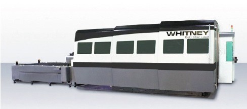 如果換成光纖激光器,所有這些成本問題就都不存在了。“一台真正的光纖激光器是純固態的,就像我們所使用的IPG光纖激光器,生成的激光光束通過光纖傳導至切割頭,”Bartholomew表示。“以前人們總是認為用光纖激光器隻能切割6.35 mm以內的厚板,”Bartholomew說到。“Whitney的測試結果證明實際上並非如此。我們已經用光纖激光器成功切割了19.05 mm的厚板,甚至還能用12 kW的光纖激光器,以12.7 m/min的速度切割6.35 mm的碳鋼,比等離子切割還快。”