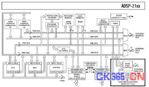 ADI ADSP2100係列是為(wei) 數字信號處理和其他高速數值處理應用而優(you) 化的微處理器,包括以下幾個(ge) 功能單元:計算單元、數據地址發生器和程序序列發生器、存儲(chu) 器、串口、定時器、主機接口、DMA以及模擬接口等。