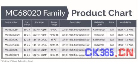 圖示3-大聯大電商平台推出的羅徹斯特的Motorola的MC68020家族產(chan) 品線