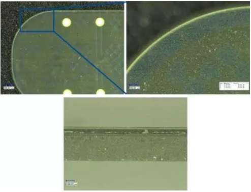 portant; word-wrap: break-word !important;">圖 7. 經過工藝優(you) 化,綠光 USP 激光器切割的 SiP 元件 (S1) 的結果圖顯示邊緣的質量完美。所示樣本未經過清理。