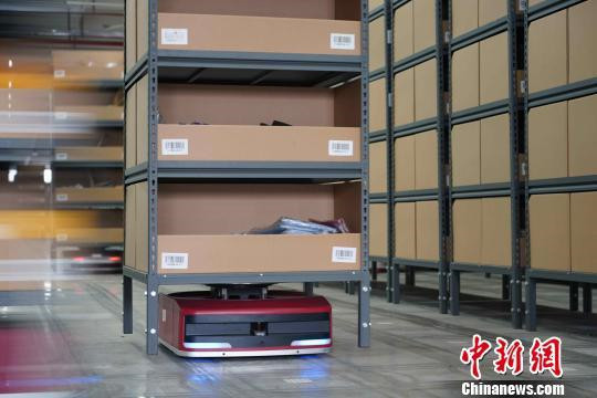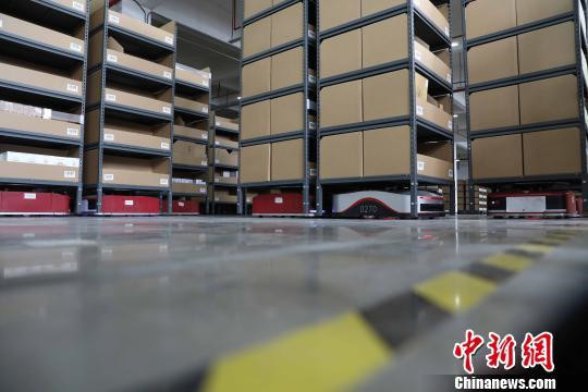 中新網廣州6月5日電 (記者 許青青)每到電商促銷季,快遞“爆倉(cang) ”都是熱門話題。記者5日從(cong) 廣州市黃埔區狀元穀電子商務園區內(nei) 的京東(dong) 物流倉(cang) 獲悉,一款名叫“地狼”的搬運機器人將揀貨效率提高了5倍,大大緩解了快遞“爆倉(cang) ”幾率。