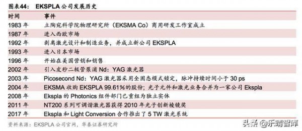 LaserQuantum是世界一流的高品質固態和超快激光源製造商。20世紀90年代,英國曼徹斯特大學的三位博士物理學家成立了LaserQuantum,公司因在光學市場的科學成就而聞名於(yu) 世。公司產(chan) 品以其可靠性,緊湊性,卓越性能和長使用壽命而著稱。公司於(yu) 2018年被醫療及高科技設備供應商Novanta收購。在超快激光領域,LaserQuantum擁有多個(ge) 係列的超短脈衝(chong) 飛秒激光器產(chan) 品,主要應用於(yu) 精密檢測和科研領域。(報告來源:華泰證券)