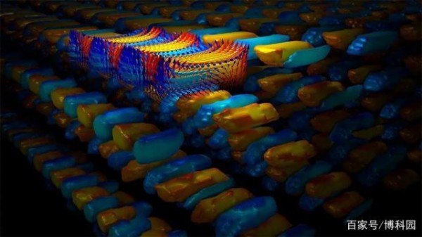 3 d圖像的supercrystalμ-PRO相場模擬使用軟件。圖片:L-Q Chen Group, Penn State戈帕蘭(lan) 將這一挑戰比作把球滾下山。它要到山腳才會(hui) 停下來,除非有什麽(me) 東(dong) 西擋住它的去路,比如一塊突出的岩石。團隊通過“破壞係統”來實現這一點——不允許材料做它想做的事情,也就是允許它在沒有限製的情況下完全最小化它的能量。研究人員將鈦酸鉛和鈦酸鍶這兩(liang) 種材料的單原子層疊加在一起,形成了一個(ge) 三維結構。鈦酸鉛是一種鐵電性材料,是一種極性材料,它具有電極化導致材料中的正極和負極。鈦酸鍶不是鐵電材料。這種不匹配迫使電極化矢量走了一條非自然的路,彎曲回來形成漩渦,就像水沿著排水溝旋轉一樣。伯克利研究小組將這些層生長在晶體(ti) 襯底上,襯底的晶體(ti) 大小介於(yu) 兩(liang) 層材料之間。