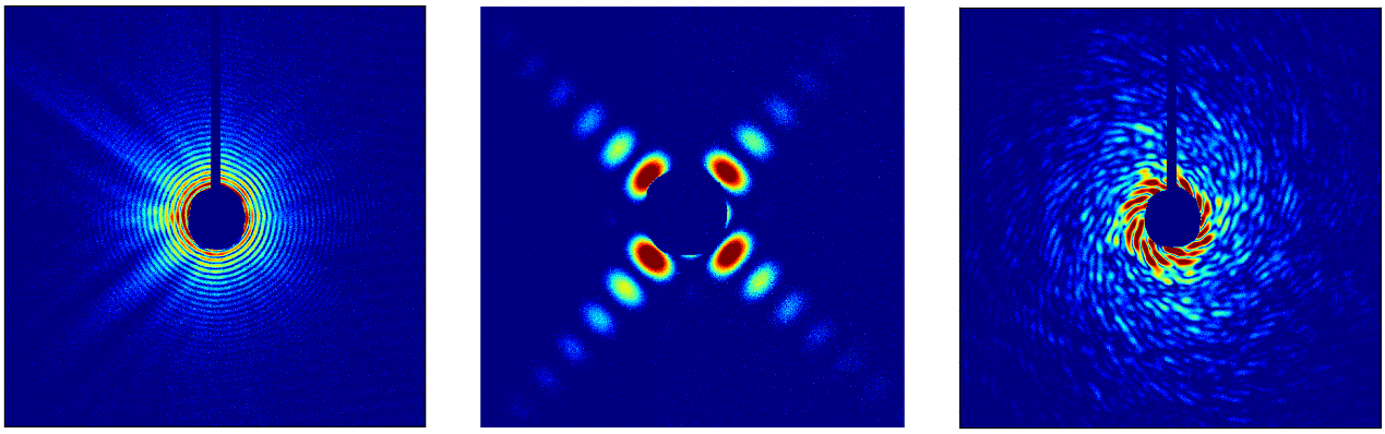 標準樣品圓孔、方孔及鸚鵡螺圖案的相幹衍射圖樣,圖源:上海科技大學網站