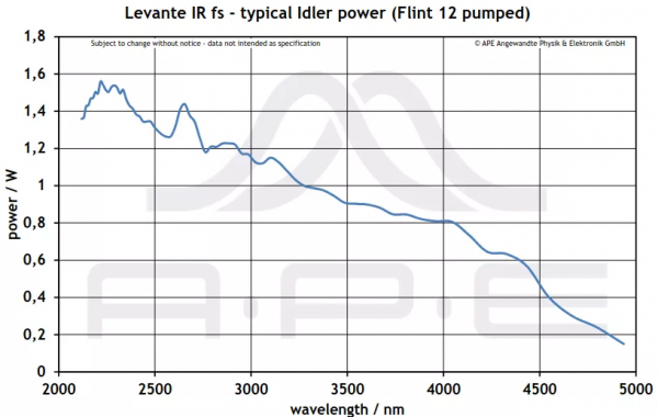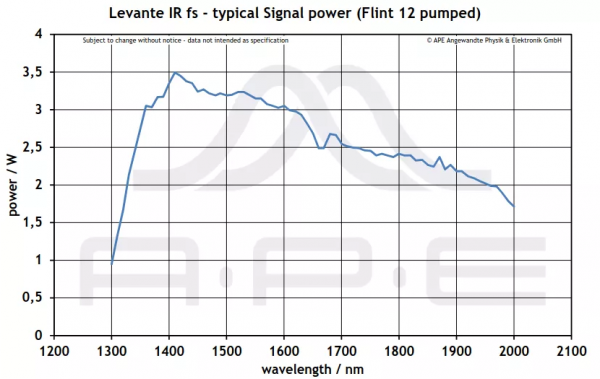 Levante IR fs OPO主要技術指標(12W泵浦):