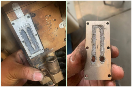 (1)防凍液具有一定的弱腐蝕性,隻可短期使用,長期使用會(hui) 導致激光器及切割頭光學器件損壞,造成不必要的損失。如下圖所示: