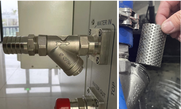 過濾網清潔周期:根據水質情況,每周一次檢查過濾網是否堵塞(激光器進水口過濾網、水冷機過濾網),激光器的進水口過濾網在激光器進水口Y型口中,水冷機的過濾網可根據水冷機型號確認位置,一般在出水管路上。
