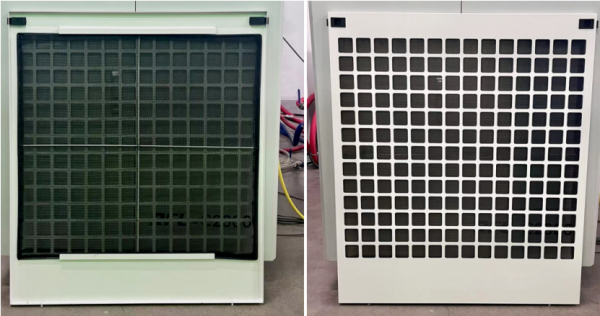 隔塵網清潔周期和清潔步驟:隔塵網在水冷機兩(liang) 側(ce) ,隔塵網很容易拿下,當灰塵多時,可增加清潔頻率。卸下隔塵網,用空氣噴槍將隔塵網上的灰塵清除,油性汙垢請用中性洗滌劑清洗,隔塵網重新安裝前應漂洗和晾幹。