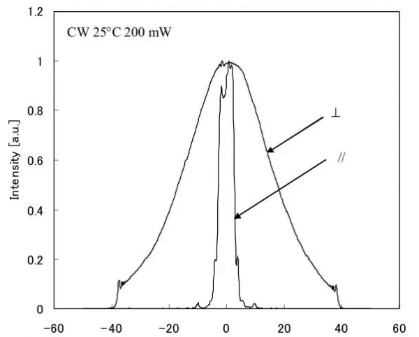 幾種已知的方法來實現一個(ge) 小型激光顯示器。其中一種我們(men) 稱之為(wei) 鏡麵掃描法。該方法利用MEMS反射鏡對準直激光束進行掃描。屏幕上的激光束光斑被快速移動掃描鏡像並形成鏡像。在掃描過程中,每種顏色的激光功率被調整為(wei) 用a表示一個(ge) 像素正確的顏色。這種方法需要在屏幕上有一個(ge) 小光束點。因此,單側(ce) 模和衍射受限激光輸出優(you) 先。在這項工作中,我們(men) 采用窄脊條紋結構的紅色LD來控製橫向模式。