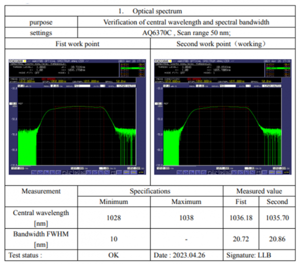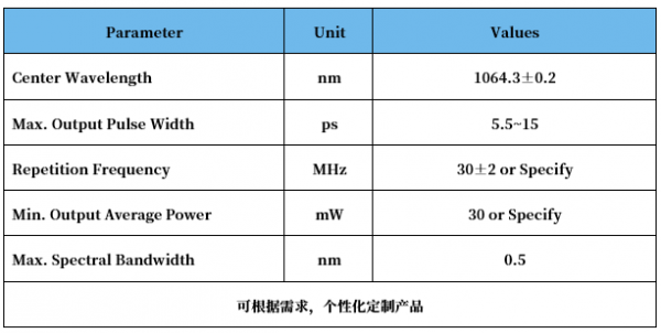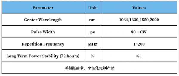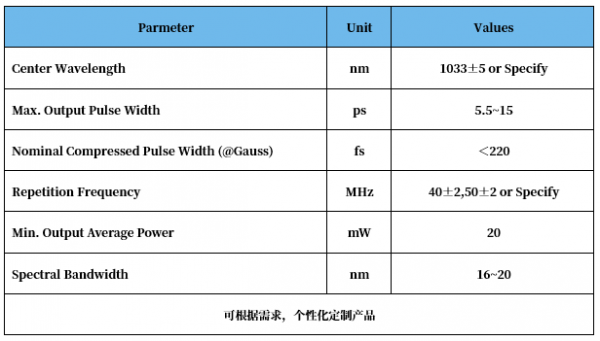飛秒種子源重點參數