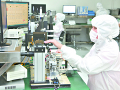 圖為(wei) 河南仕佳光子科技股份有限公司工作人員在做芯片測試 鶴壁日報記者 李雪婷 攝我們(men) 的DFB激光器芯片已經研製成功,預計下半年可...