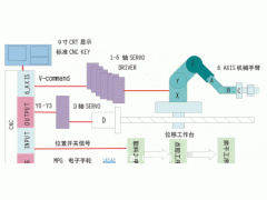三、方案功能的實現 1.控製係統6AXIS+1 AXIS的架構如下圖: 圖二 64XIS+1 AXIS的控製架構 2.硬件的組成和6+1的設計架構實現 控製係統的硬件部分主要有CNC數控係統、伺服係統和其他輔助元件三部...