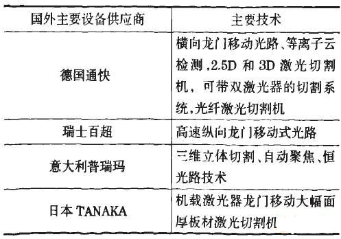 表l 國際代表性激光切割(laser cutting)設備製造商主要技術