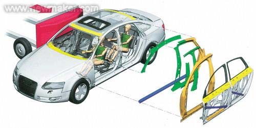 拚焊板已被廣泛的應用於(yu) 車身部位,ULSAB(世界輕質鋼製車身協會(hui) )的最新研究結果表明:最新型的鋼製車身結構中,50%采用了拚焊板製造。