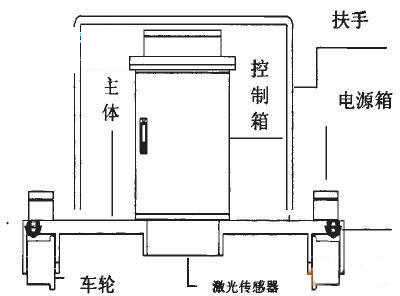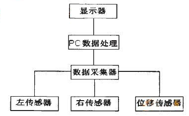 與(yu) 定子高度測量一樣,該係統也是采用三角法激光測距,監測儀(yi) 由2個(ge) 激光傳(chuan) 感器組成,分別測量感應板的兩(liang) 邊,通過位移傳(chuan) 感器等間距采樣並計算當前的裏程,然 後經計算機處理分析後在顯示屏上顯示實時測量結果,測量小車采樣頻率高,可達到16kHz,測量精度≥0.04min,可進行事件觸發(即發現數據超標才 開始記錄,以節約內(nei) 存空間),傳(chuan) 感器的采樣間隔可調,數據處理可靠,不失真。係統構成圖和主體(ti) 示意圖分別如圖4和圖5所示。