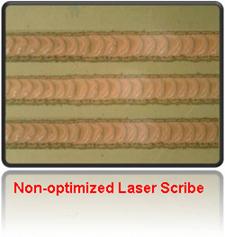 圖7. JPSA薄膜太陽能電池優(you) 化劃片(左)與(yu) 非JPSA薄膜太陽能電池劃片(右)的比較