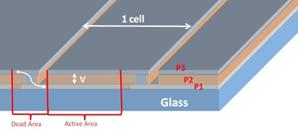 圖6. 薄膜太陽能電池的P1、P2、P3三層材料需要多光路激光劃片係統先後進行三次劃片
