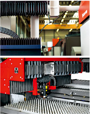 BySpeed激光切割機(laser cutting),切割頭以169m/min的速度移動,在空氣動力學中會(hui) 出現巨大的差異。這時候會(hui) 出現一定的風險,光束通道中的某些點上會(hui) 有負壓力而不是所希望的正壓力。在這些點上潛在地存在著汙染的危險。所麵臨(lin) 的挑戰是通過利用精確測量的動態光束傳(chuan) 輸、防護罩交換器和靈活的通道避免出現類似的情況。所有這些措施都確保了聚焦及精確的光束到達切割台,而不是分散的光束。#p#分頁標題#e#