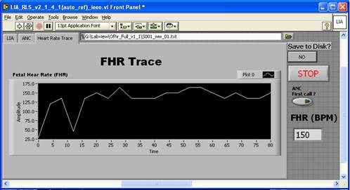 圖2b顯示了三個(ge) 可選的顯示,包括數字同步或鎖相放大器(LIA)、自適應噪聲消除器(ANC)、及心律軌跡。前兩(liang) 個(ge) 顯示可用於(yu) 輔助開發,第三個(ge) 顯示用於(yu) 表明胎心率相對時間的值。用戶可在線觀察數據或將其保存用於(yu) 進一步分析。