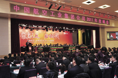 上級領導在講話中都對中航工業(ye) "十一五"及2010年的成就表示祝賀。景文春表示,中航工業(ye) 的團 隊精神、拚搏精神和不服輸的勁頭讓他感觸最深,特別是在型號攻堅的關(guan) 鍵階段,抓科研、抓生產(chan) 、抓攻關(guan) 不分白天黑夜,不分領導幹部和普通職工,一塊想辦法, 一塊著急上火,一塊分享成功的喜悅,這反映出中航工業(ye) 幹事業(ye) 的精神,要繼續發揚下去。
