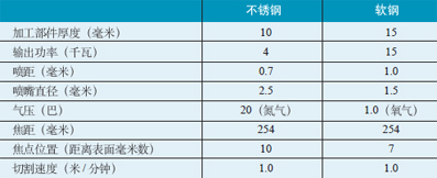 表2給出了利用光纖激光器切割10毫米厚不鏽鋼和15毫米厚軟鋼要達到最佳的切割質量所需要的加工參數(見圖6)。為(wei) 了獲得最好的切縫質量,所需的最佳 切割速度要比能實現的所給出的輸出激光功率慢,因為(wei) 所用的切割速度對切縫下端的殘渣累積會(hui) 產(chan) 生影響。累積殘渣產(chan) 生於(yu) 切割速度大於(yu) 最佳的預防殘渣累積切削速 度的時候。