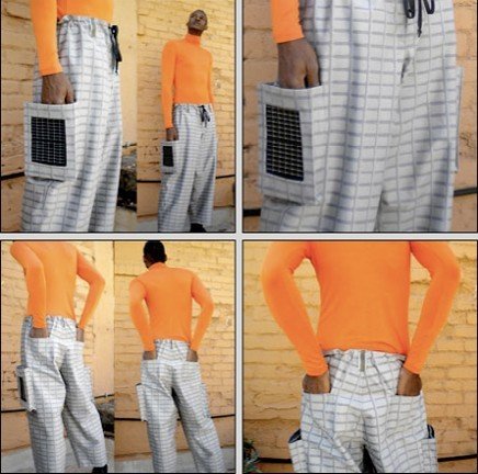 這條太陽能褲產(chan) 生的電量雖不像發電廠那樣多,但是產(chan) 生的5伏特的電壓足夠為(wei) 隨身攜帶的MP3和手機充電。這條褲子在太陽底下連續直曬幾個(ge) 小時後,太陽能就會(hui) 儲(chu) 蓄到衣服上的蓄電池中,通過口袋裏的USB接口,擁有太陽能褲子的時尚人士可以邊走邊為(wei) 給手機、mp3等供電。www.tynpeijian.com
