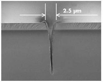 圖5. 氮化镓-藍寶石晶圓激光劃片的切口寬度2.5微米。