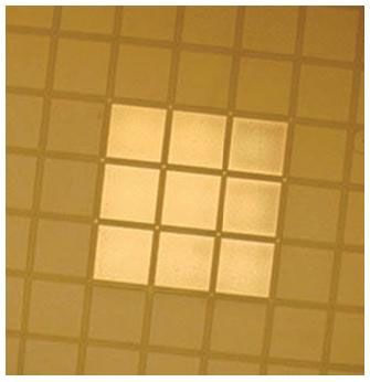 圖4. 248nm激光脈衝(chong) 對藍寶石上的氮化镓進行激光剝離(一個(ge) 脈衝(chong) 激光光斑一次覆蓋9個(ge) 芯片)。