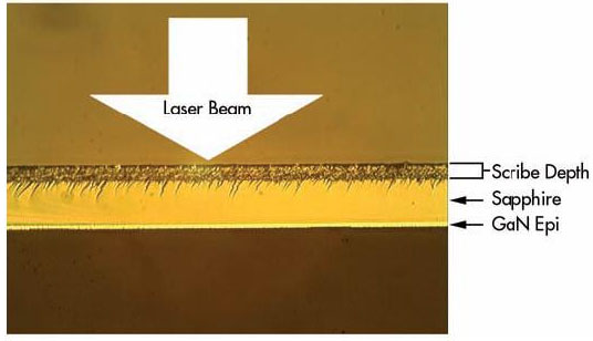 傳(chuan) 統的製造商仍在繼續供應橫向結構的藍光LED,激光劃片是加工這種結構的晶圓的理想選擇。藍寶石的極高硬度給鋸片切割與(yu) 金剛石劃片帶來芯片成品率低、產(chan) 量低和成本高等諸多問題。