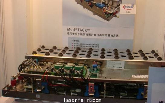由於(yu) 在大功率IGBT上有很大的優(you) 勢,英飛淩這次幾乎將一個(ge) 風電站搬到了會(hui) 場,現場展示了其最新ModSTACK平台,據介紹,這個(ge) 平台采用水冷方式,效率更高,可以用於(yu) 大型風電站,輸出功率達到2兆瓦!