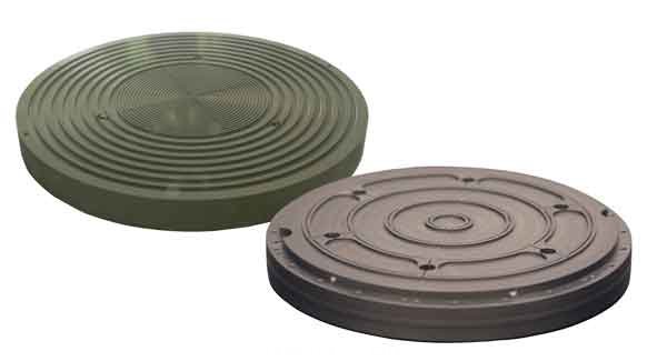 為(wei) 了降低係統研發時間與(yu) 降低成本,Aerotech生產(chan) 並整合高精度,客製化之真空吸盤(圖.8)。這些真空吸盤包含應用於(yu) 200mm與(yu) 300mm之矽片設計,包含一組或者多組真空區域。 Aerotech具有領先業(ye) 界之升產(chan) 能力,可提供標準3 µm平麵度之真空吸盤,甚至最高可使用選配之1 µm之真空吸盤(若使用300mm矽片吸盤)。水平調校機製與(yu) 矽片取放裝置可與(yu) 此吸盤整合。另外,Aerotech具有多年經驗的工程師可以設計出與(yu) 任何機械手臂整合之吸盤。