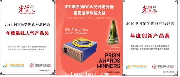 此次展會(hui) ,IPG推出眾(zhong) 多新品,得到了市場和業(ye) 內(nei) 專(zhuan) 家學者的高度讚揚和肯定,引領著光纖激光行業(ye) 發展的方向。其中,在fun88官网平台雜誌社聯合上海慕尼黑展覽中心聯合推出的“2010中國光學優(you) 秀產(chan) 品”評選中,IPG新推出的準連續QCW高脈衝(chong) 能量光纖激光器獲得了“年度創新產(chan) 品獎”,YLS-10000W高功率光纖激光器也被評為(wei) “年度最佳人氣產(chan) 品”。無獨有偶,QCW光纖激光器在2011年1月16日美國舊金山獲得了由SPIE舉(ju) 辦的工業(ye) 激光玲瓏大獎。IPG(北京)總經理顧波博士表示:我們(men) 很高興(xing) 地看到公司研製的產(chan) 品不僅(jin) 受到用戶的喜愛,還贏得了國際專(zhuan) 家的讚譽,使我們(men) 能夠從(cong) 眾(zhong) 多優(you) 秀的候選者中脫穎而出。我們(men) 之所以能夠獲此殊榮,也是源於(yu) 我們(men) 在激光領域的不斷探索與(yu) 創新。IPG光纖激光器在工業(ye) 應用上將會(hui) 繼續保持領先,不斷創新技術,取得長足發展。