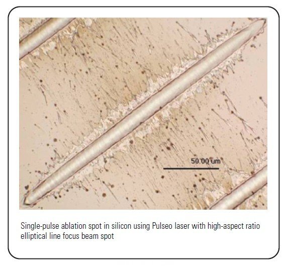 圖2. Pulseo激光器經過扁長形光束聚焦後作用在矽晶圓表麵上的單脈衝(chong) 熔化點