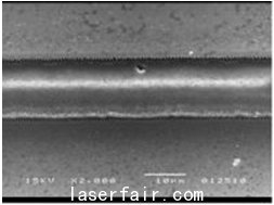 該圖是通過掃描電子顯微鏡拍攝的。圖片顯示了通過超快脈衝(chong) 激光產(chan) 生的微通道。