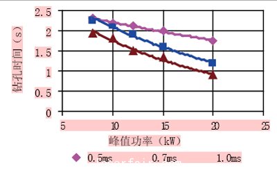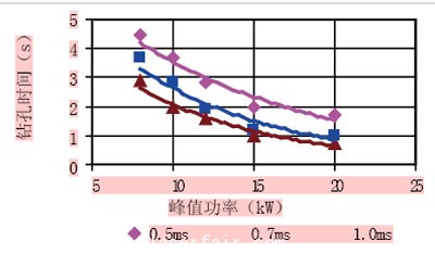 圖5 不同脈衝(chong) 寬度時的鑽孔時間 (與(yu) 表麵成20角,JK300D,O2 輔助)