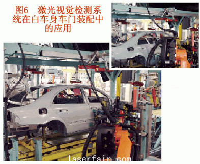 圖6所示為(wei) 激光在線檢測技術在白車身車門裝配中的應用實例。其中機器人控製下的抓拾器與(yu) 激光在線檢測係統通過總線控製,形成一個(ge) 閉環係統,通過激光在線檢測係統在門蓋裝配過程中的實時動態測量,實時地把所測量數據與(yu) 處理器中的標準數模數據對比,給出測量值與(yu) 理論值的偏差,實時調整抓拾器的安裝位置,使其達到一個(ge) 設計的最佳值,此時門與(yu) 側(ce) 圍的平度和間隙均會(hui) 達到一個(ge) 最佳值。