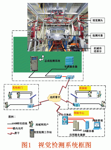 焊接是汽車製造過程中的重要工序之一,具有很高的技術指標要求,因此必須對焊接質量進行很好地檢測。傳(chuan) 統的檢測方式通常是采用三坐標測量機,但這種方式操作複雜、速度慢、周期長,隻能對工件進行抽檢。視覺檢測作為(wei) 一種新型的檢測手段,具有大量程、非接觸、直觀、快速、精度高等優(you) 點,因而可以應用於(yu) 汽車車身的在線檢測,及時反饋產(chan) 品的誤差信息,不僅(jin) 提高了產(chan) 品的合格率,同時也為(wei) 工藝改進、減小誤差提供了閉環反饋的尺寸控製手段,符合現代製造的質量工程要求。圖1所示為(wei) 通用視覺檢測係統框圖,其中視覺測頭即為(wei) 各種類型的視覺傳(chuan) 感器。