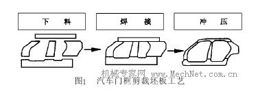 汽車車身主要是由一些薄板構件組成,由於(yu) 多數衝(chong) 壓件形狀不規則,衝(chong) 剪下料時板材廢料占有相當大的比例。象批量剪裁製衣一樣,剪裁坯板焊接可使板材利用率大大提高。實際上,拚焊坯板遠不隻是節省鋼材,它能根據優(you) 化強度設計及使用條件剪裁成不同厚度、不同表麵複層及材質焊成一個(ge) 整體(ti) 坯板,然後一次衝(chong) 壓成型。圖1為(wei) 豐(feng) 田轎車門框,它是由5塊厚度不同,材質不同(普通板、鍍鋅板及高級鍍鋅板)根據其不同部位所需強度及腐蝕條件選定的坯板激光拚焊後一次衝(chong) 壓成型。減輕了重量及簡化了生產(chan) 工藝,大大降低了生產(chan) 成本。
