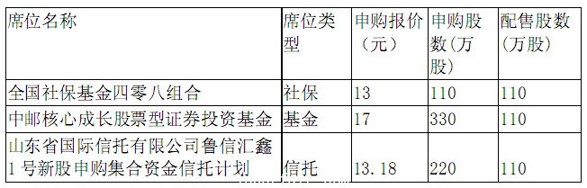 光韻達網下共發行330萬(wan) 股,機構申購上限為(wei) 330萬(wan) 股。經過搖號,每個(ge) 中簽號可以獲得110萬(wan) 股。從(cong) 配售結果來看,申購席位較多的基金並未獲得高於(yu) 其他中簽機構的配售股數,共有3家機構席位中簽,且分布在社保、基金和信托三家不同類型的機構。其中中郵創業(ye) 基金管理有限公司和山東(dong) 省國際信托有限公司較為(wei) 看好該股,申購報價(jia) 略高於(yu) 平均水平。