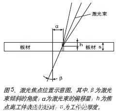圖5示意了進行激光焊接時其焦點位置參數的選擇,主要包括有離焦量h(即焦點離工件表麵的距離、豎直焦點位置或焦點高度)、偏移量(即水平焦點位置)和入射角(即激光束傾(qing) 斜的角度)三個(ge) 參數。