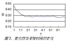 以上客觀因素在激光器的設計中不可避免,為(wei) 了保證激光功率的穩定輸出,就必須使激光器各個(ge) 受熱器件快速達到熱平衡狀態。我們(men) 通過對激光器聚光腔的通水管道的設計,使得通過腔體(ti) 的水流流速達到設計值,如圖3為(wei) 800W設備的功率實驗。在經過大約15到20分鍾的熱平衡時間,功率進入穩定狀態。